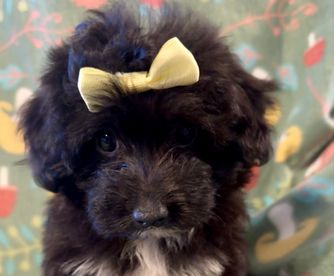 Our Aussiedoodle puppies include black phantom, black and white, and black tri-color. Cavapoo puppies include chocolate, tri-color, red, brown, blenheim, black and white, black, black and tan, and apricot. Colors will vary depending on the parent dogs.
