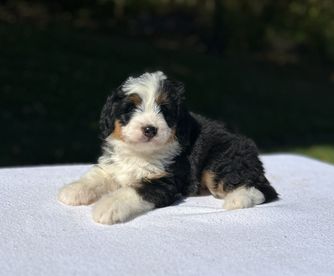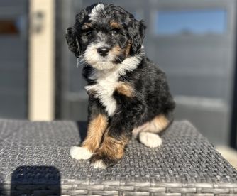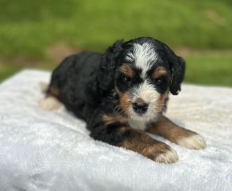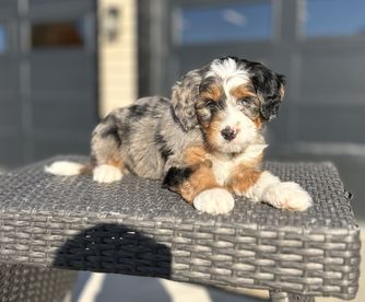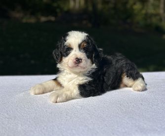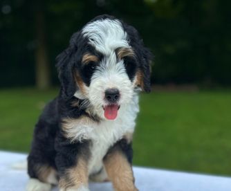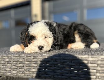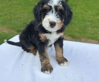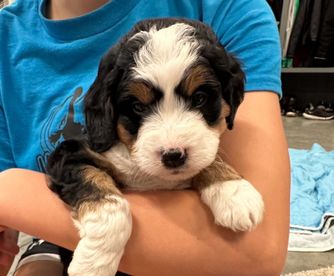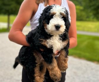 Holly is a F1 Bernedoodle that we raised, she is a very sweet and friendly dog. Loves people and any attention she can get:)