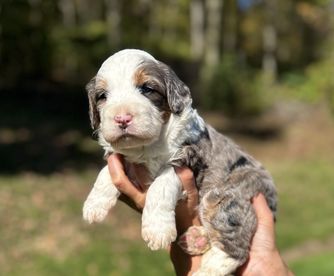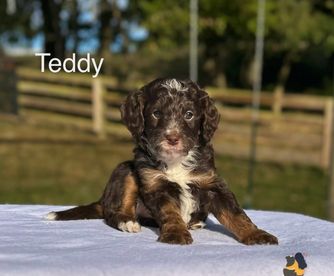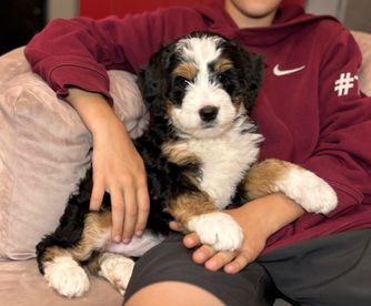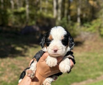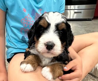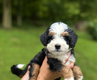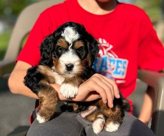We have been raising mini Bernedoodle’s for 7 years now. We only have a couple family dogs. Our 3 kids are a big part of why we started raising these adorable pups! They love on them and help get them started on leash training and learning how to sit. It’s such a blessing getting to raise these precious pups and seeing the happiness they bring to people!