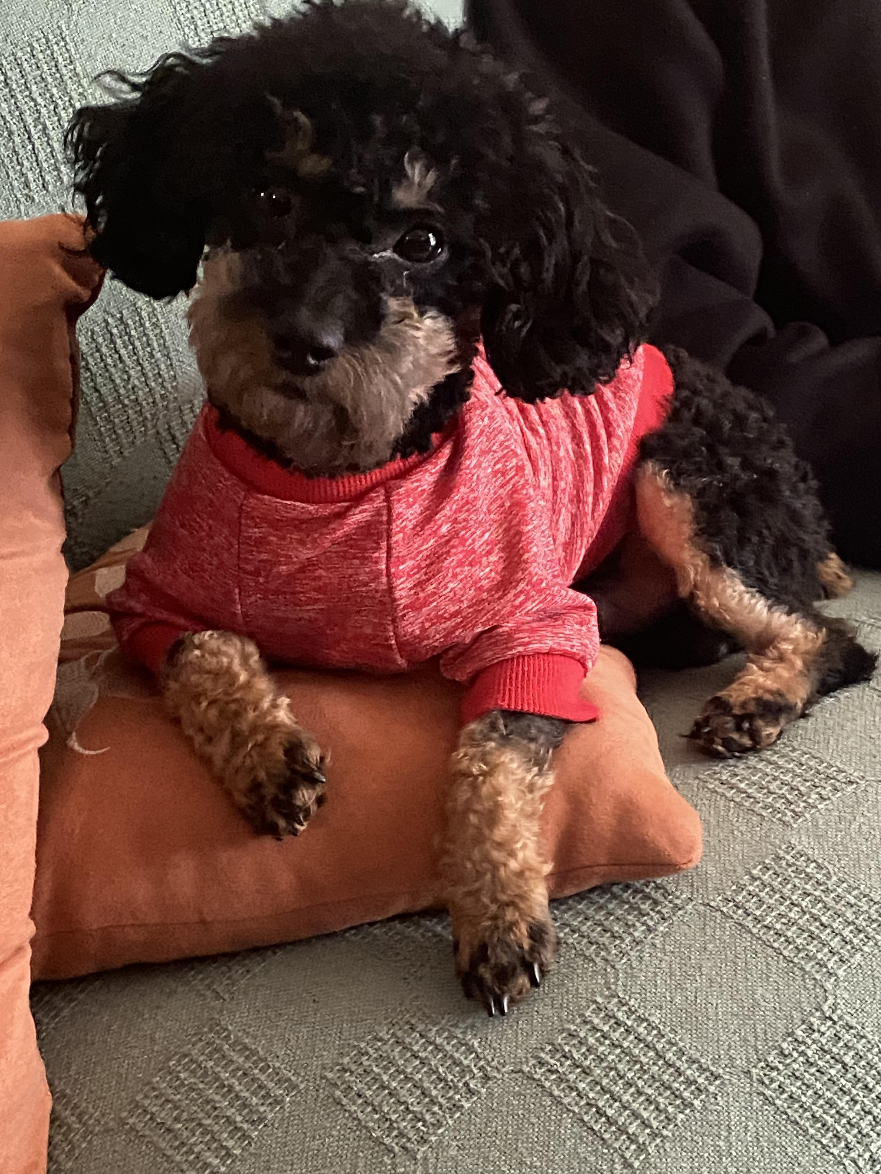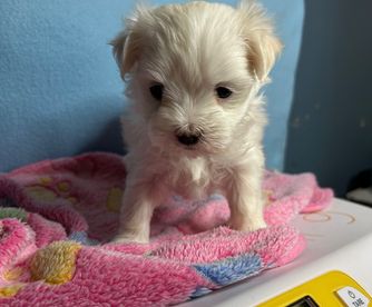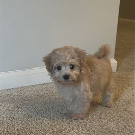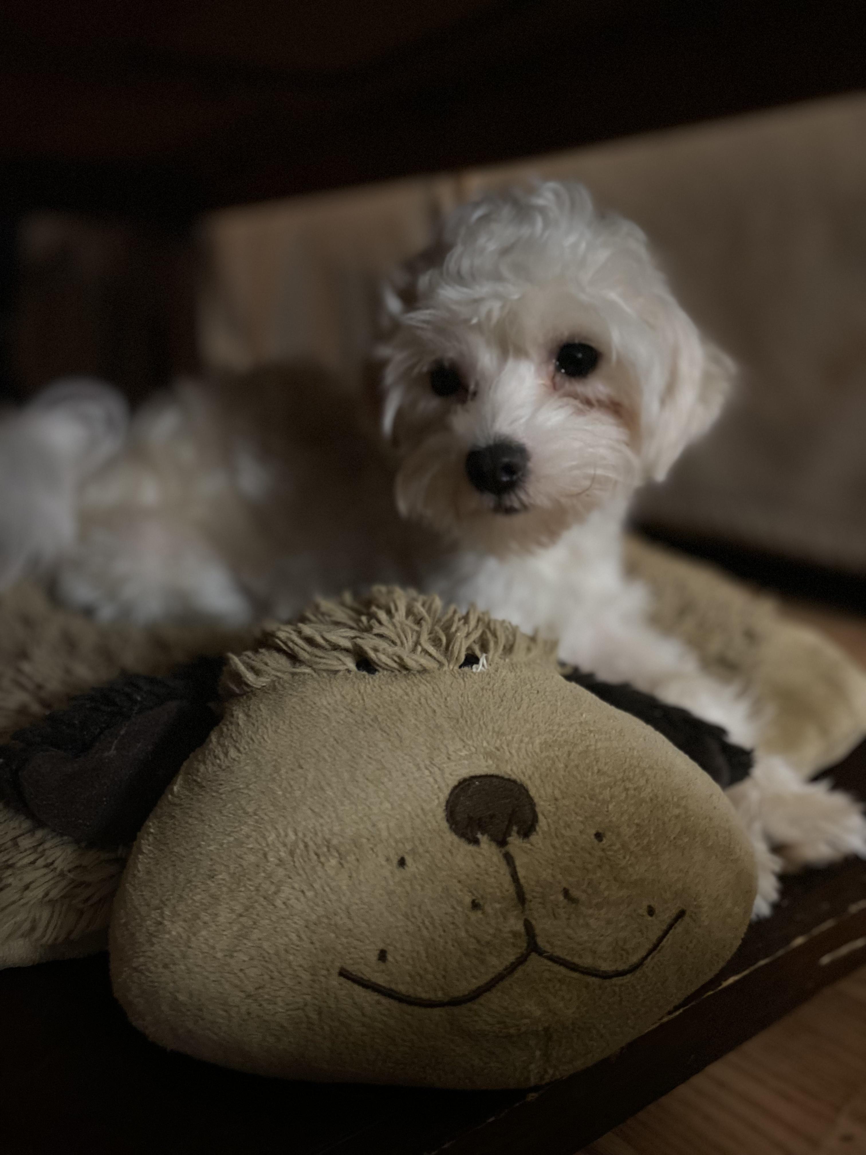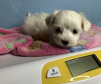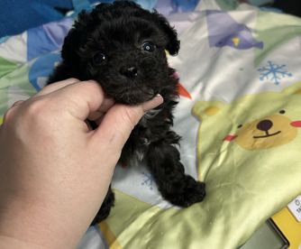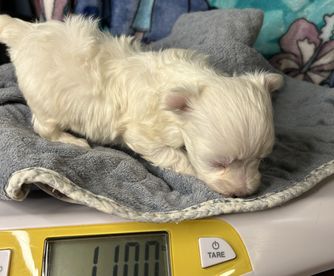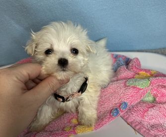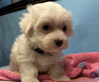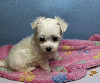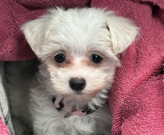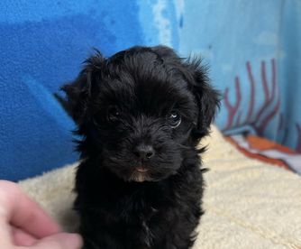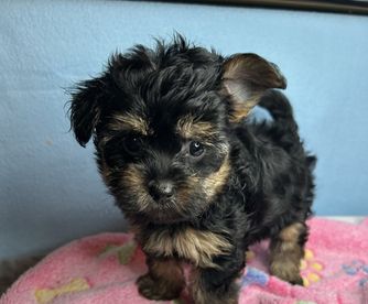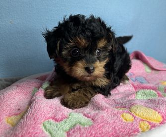 Our Yorkshire Terrier puppies are black and gold. Maltese puppies are white. Yorkipoo puppies are black and gold. Poodle puppies include apricot and black. Maltipoo puppies include apricot and black. Colors will vary depending on the parent dogs.