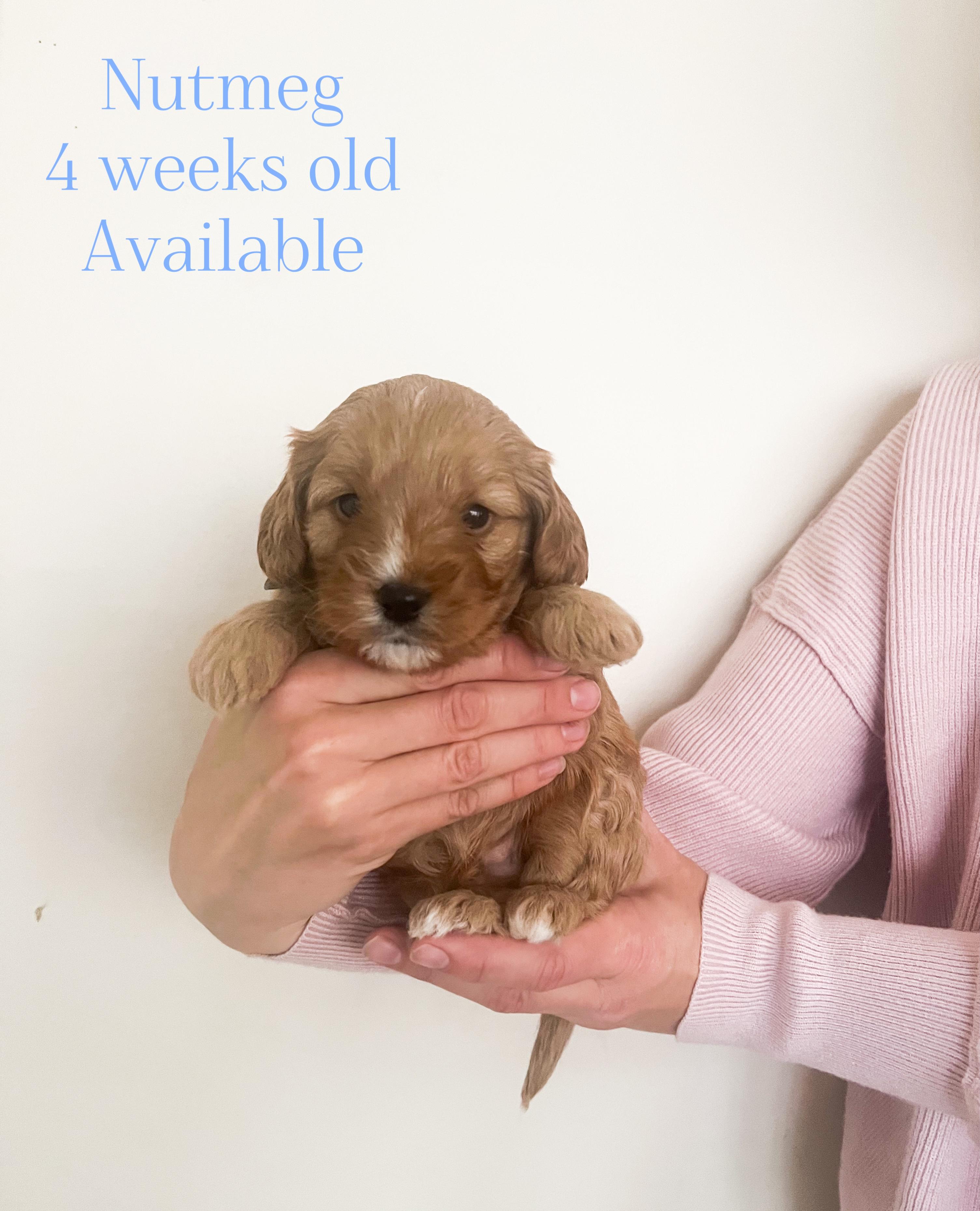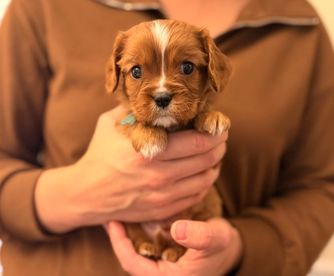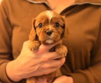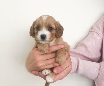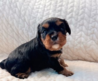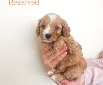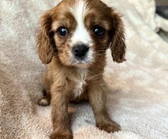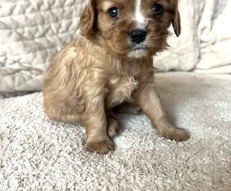 Our Cavapoo puppies include white and red. Cavalier King Charles Spaniel puppies include blenheim, ruby, black and tan, and tri-color. Colors will vary depending on the parent dogs.