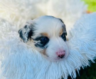 Our Sunny girl is a beautiful blue merle TOY Australian Shepherd. She is health and genetic tested and registered with the American Stock Dog Registry. She is a little bundle of love.