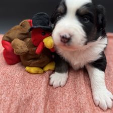 We have two beautiful girls left in our mini aussie litter! They are almost five weeks old and their sweet little personalities are really coming out now!
