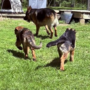 I gave two gorgeous males available and at the perfect age to start their training. They have already learned to not jump up and potty trained. One black and red and one sable available. Amazing calm stable temperaments. Will make incredible family dogs or hiking buddies.