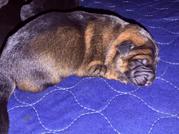 Gorgeous black and red plush female. She is 3rd generation Cunningham and comes from a long line of truly exceptional dogs. Even more beautiful in person and she is loving and attentive. Also incredibly smart.