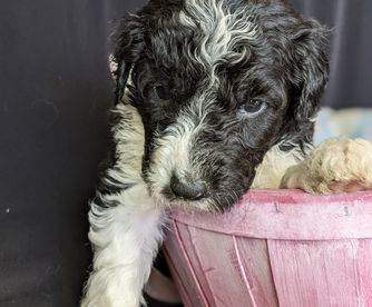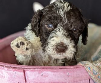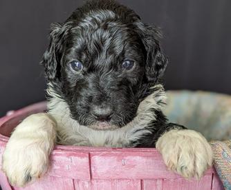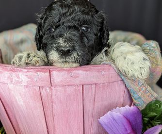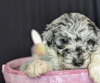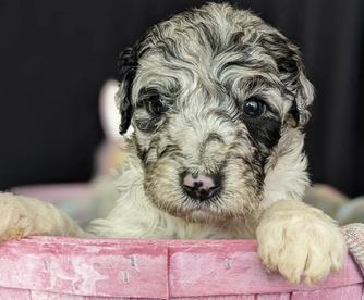 Lark is a female Bordoodle. Carefully selected as a great representative of her breed, Rachel decided to make her part of their program. Rachel has passed Good Dog’s screening process, which involved a review of their breeding practices, environment, and the mental and physical health of their dogs.