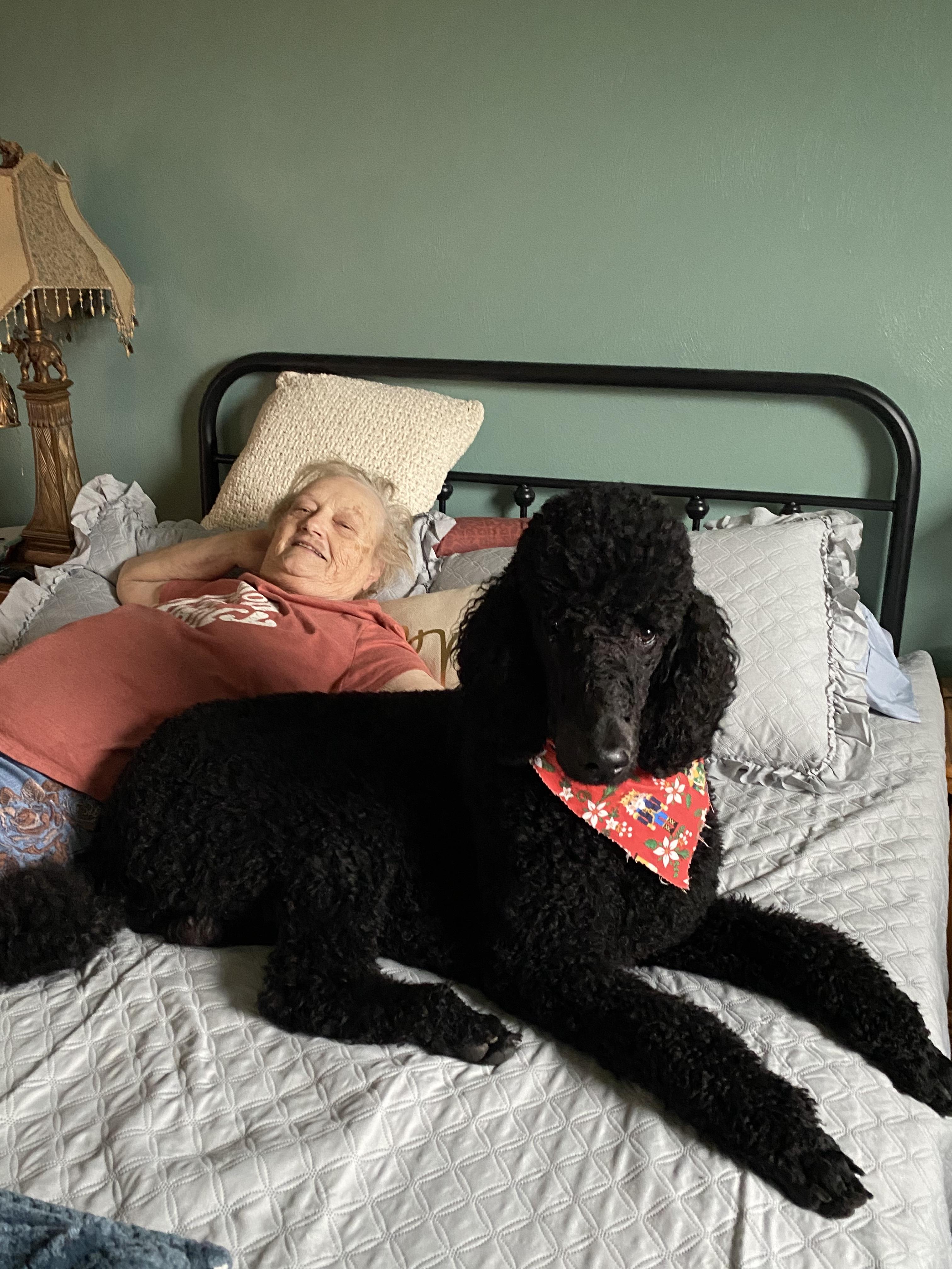 Tater is a male Poodle. Carefully selected as a great representative of his breed, Necole decided to make him part of their program. Necole has passed Good Dog’s screening process, which involved a review of their breeding practices, environment, and the mental and physical health of their dogs.