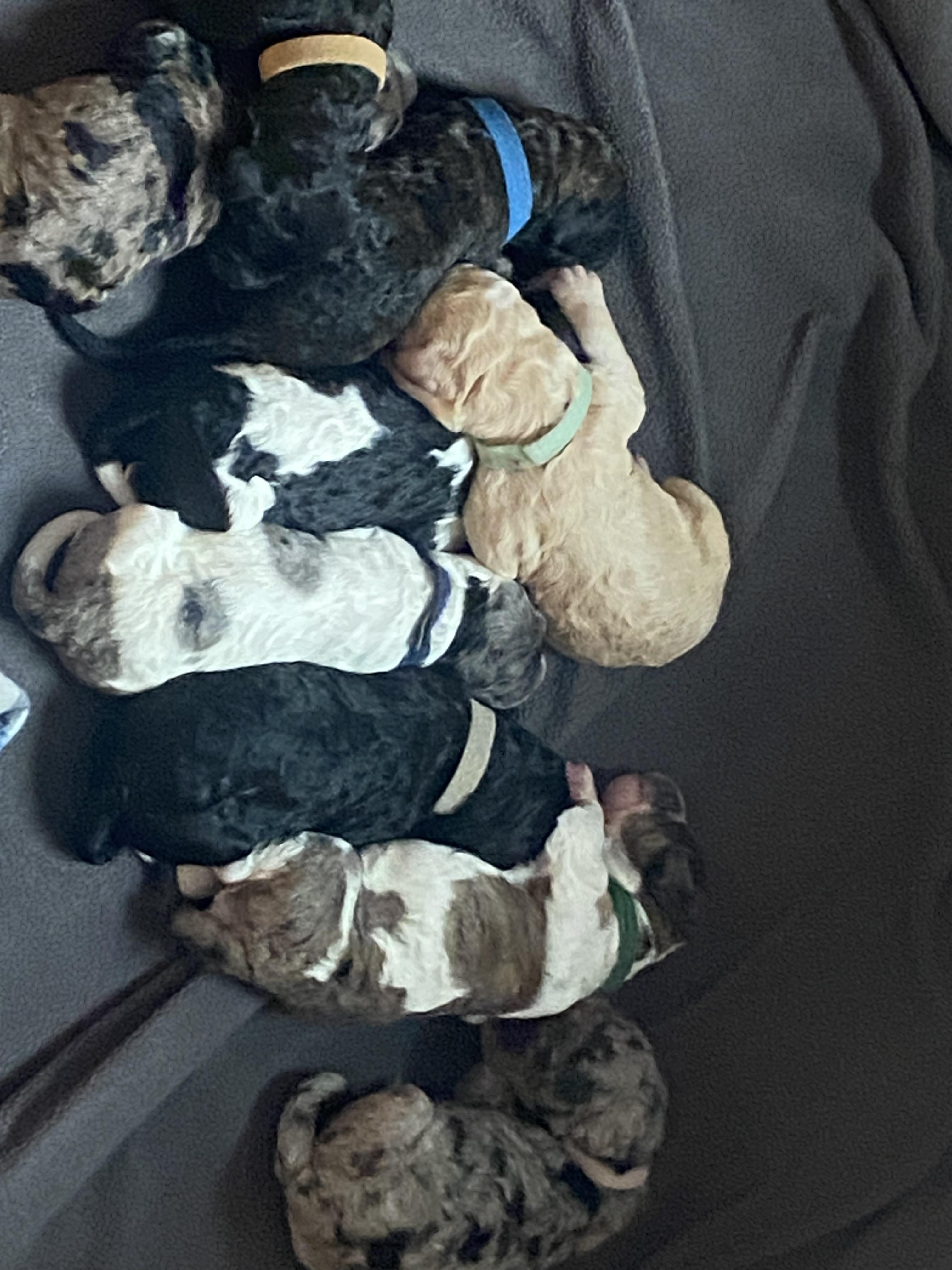 Our Goldendoodle puppies include cream, apricot, red, chocolate, black, merle, and parti. Poodle puppies include sable, black, cream, parti, and phantom. Colors will vary depending on the parent dogs.