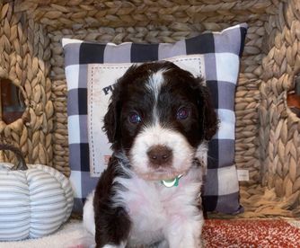 Berk is a male English Springer Spaniel. Carefully selected as a great representative of his breed, Amanda decided to make him part of their program. Amanda has passed Good Dog’s screening process, which involved a review of their breeding practices, environment, and the mental and physical health of their dogs.