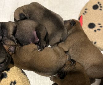Our puppies include red fawn and fawn. Colors will vary depending on the parent dogs.