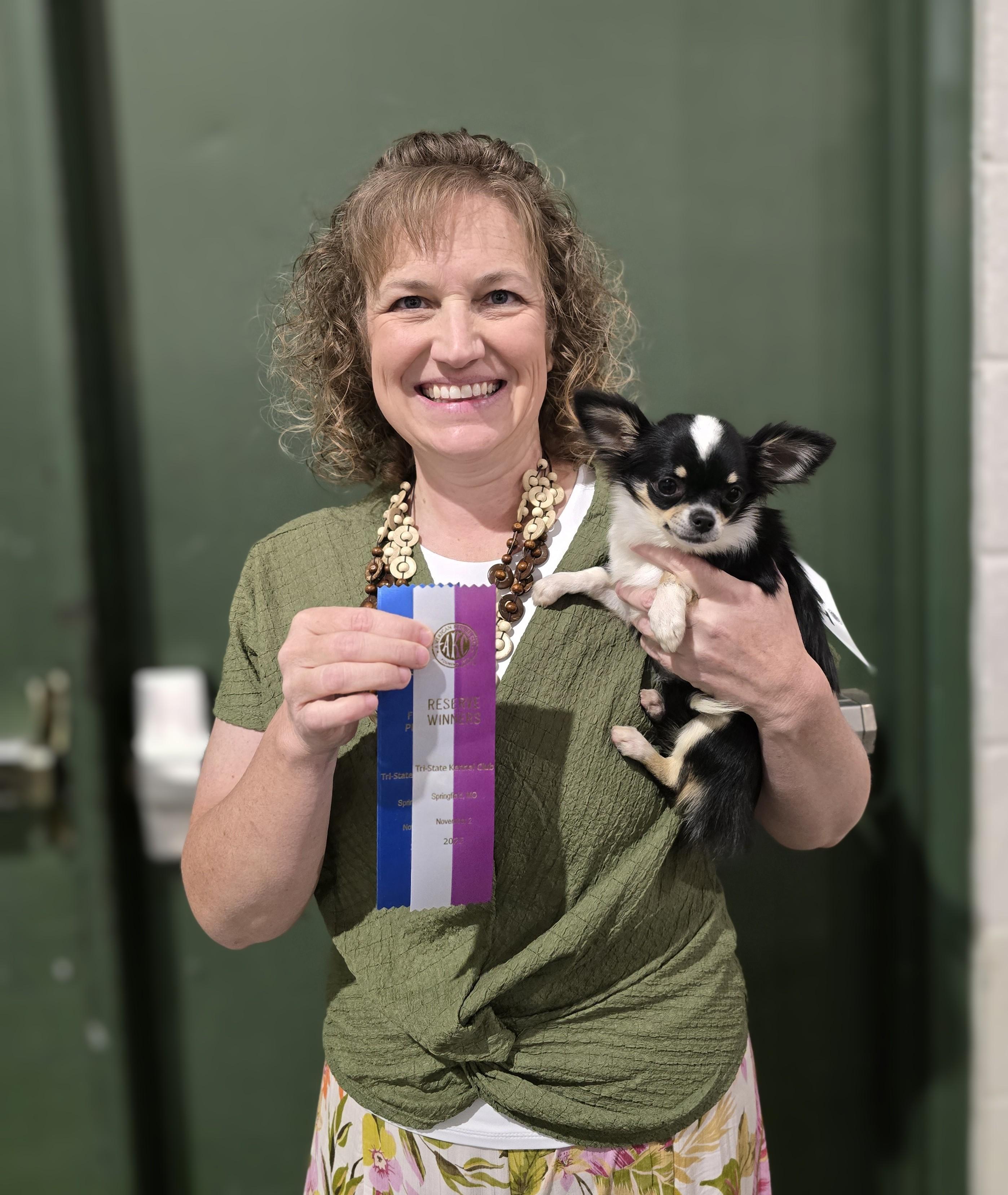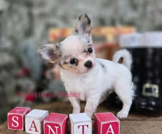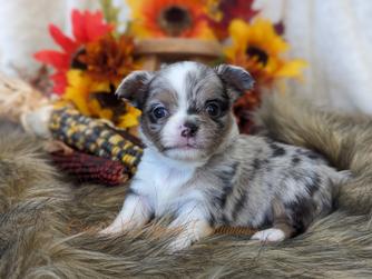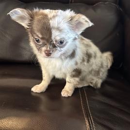 I have always loved raising puppies and taking care if any and all animals! My family got a Chihuahua puppy when my son was very young and I fell in love with the breed! I then found the merle pattern in the breed and fell in love with the pattern! However at yje time there were not a lot of well bred merle chihuahuas. So I decided to do my part to improve the confirmation in the merle pattern. Over the last 8 years of breeding I have produced some gorgeous merles within standard and am very proud of my accomplishment!