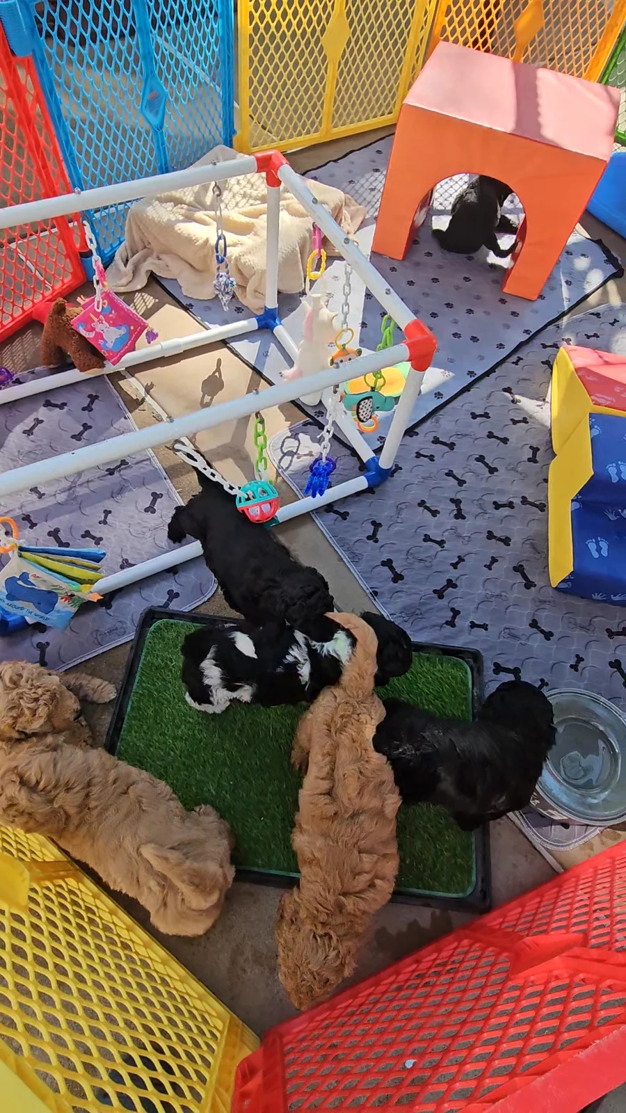 "The cost includes first round of core vaccines, microchip, crate training, grass pad training, ENS training, socialization, and a wide range of sensory experiences, along with weekly puppy visits. All of our puppies are the same price regardless of color or gender."