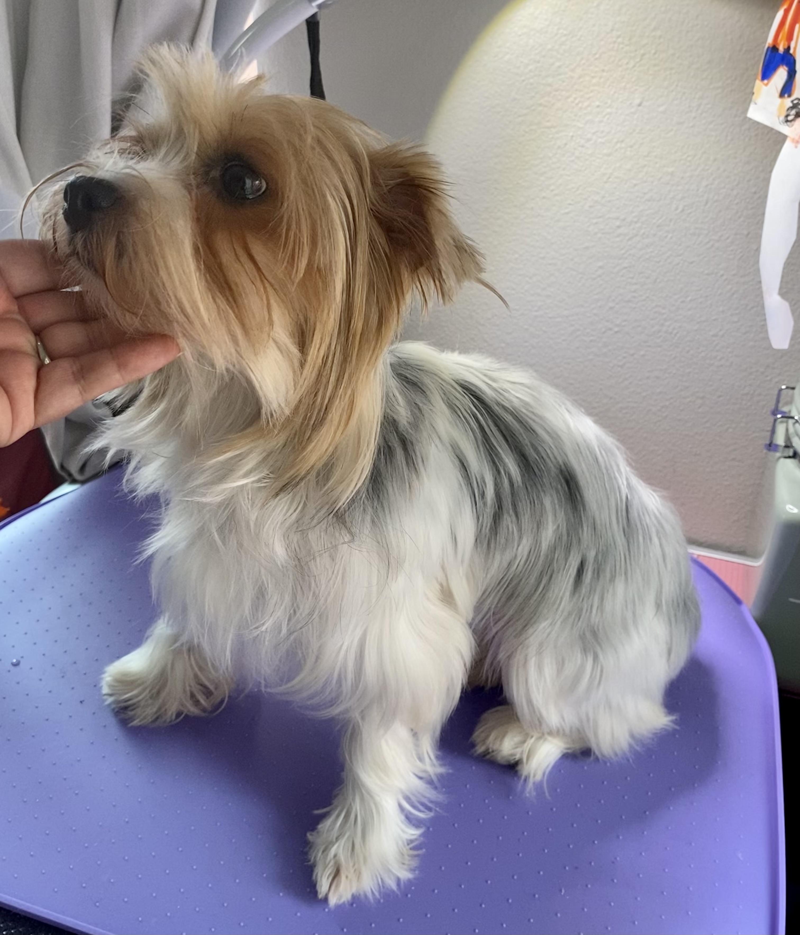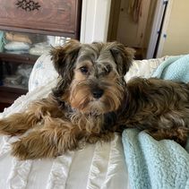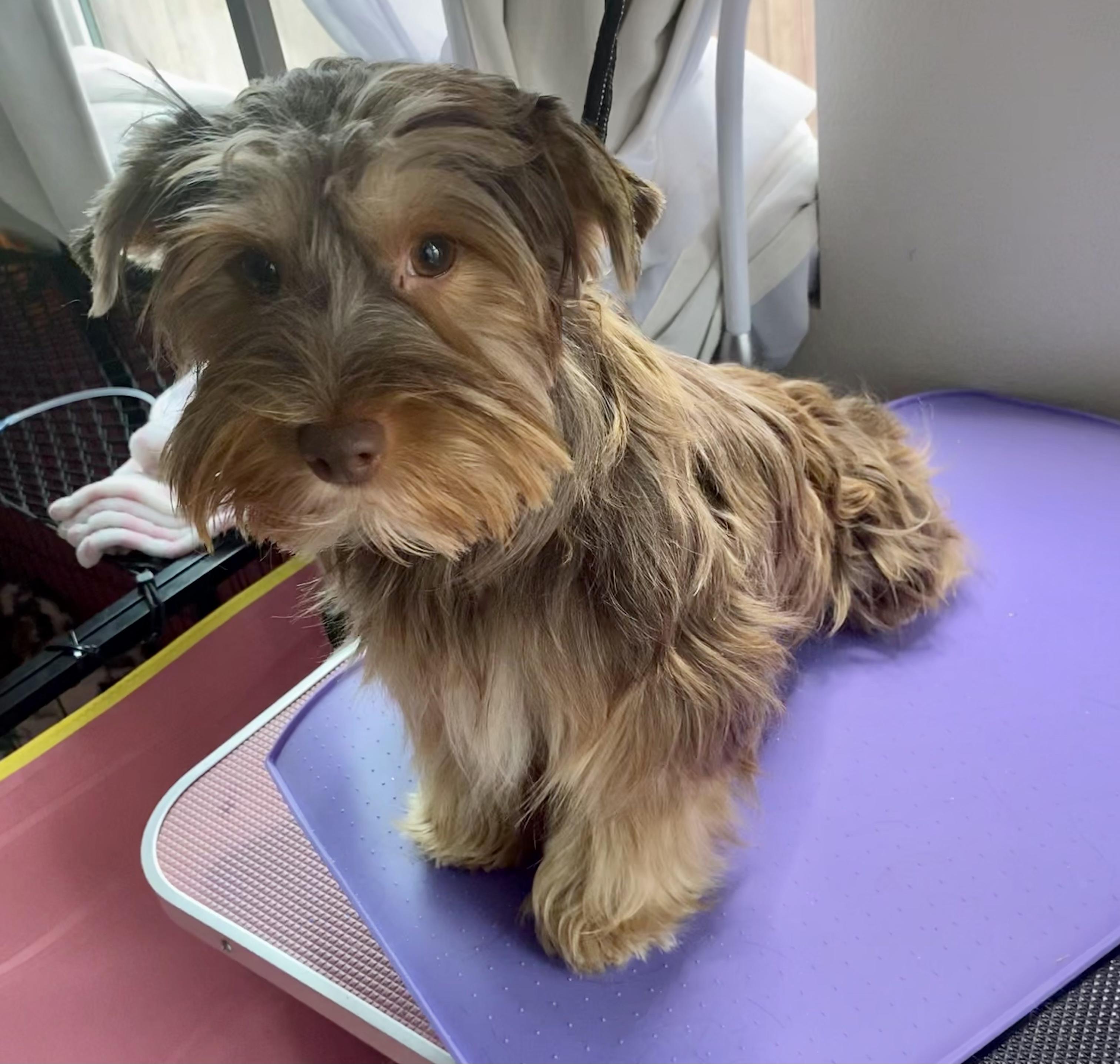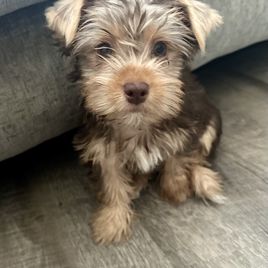 Golden Chocolate Yorkshire Terrier. Great temperament. She’s a big kisser. 🥰