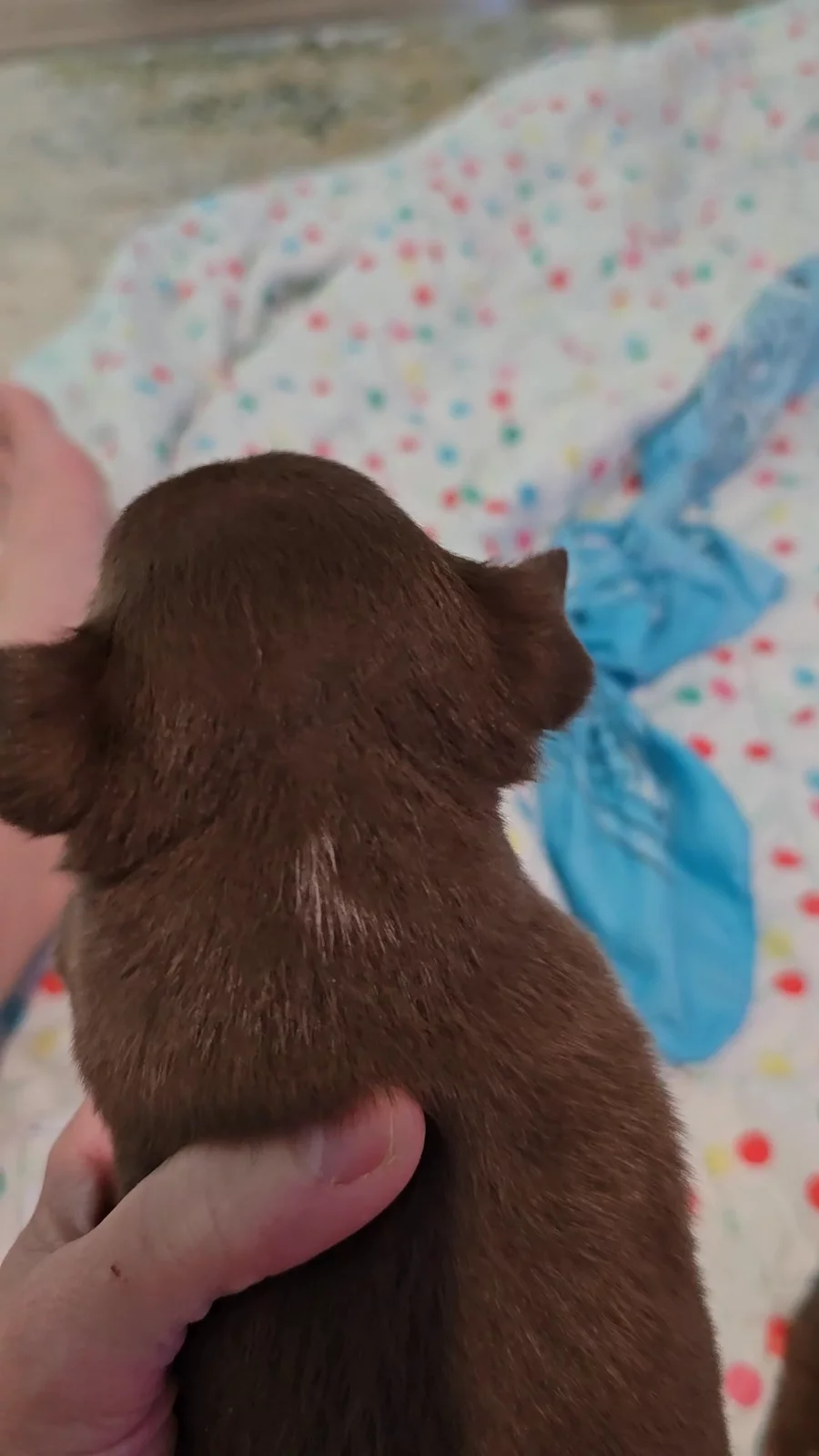 Girl #2 is my last girl charting 4.5 lbs grown ,she's gorgeous sweet,full of personality !!! She's 5 wks today, the last of my litter left of my 5 chocolate girls!! Reserve her . oday I've had ALOT of interest in this beautiful baby girl i love the half-moon shape on the back of her neck ...