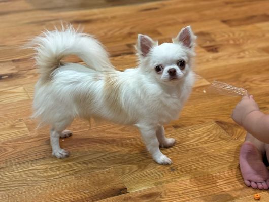 My first chihuahua inspired me to breed purebred, beautiful chihuahuas. I spent a really long time looking for the perfect chihuahua with a round short snout, long silky hair, apple head with big eyes and she is just that and more. I want to be able to provide that ease to families who are looking what I had such a hard time finding.