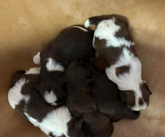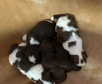 Our puppies include chocolate, black, liver, blue, gold, red, silver, black and white, silver and white, red and white, gold and white, brindle and white, blue and white, liver and white, and brindle. Colors will vary depending on the parent dogs.