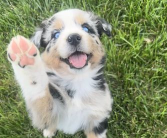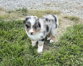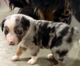 Our puppies include blue merle and black tri-color. Colors will vary depending on the parent dogs.