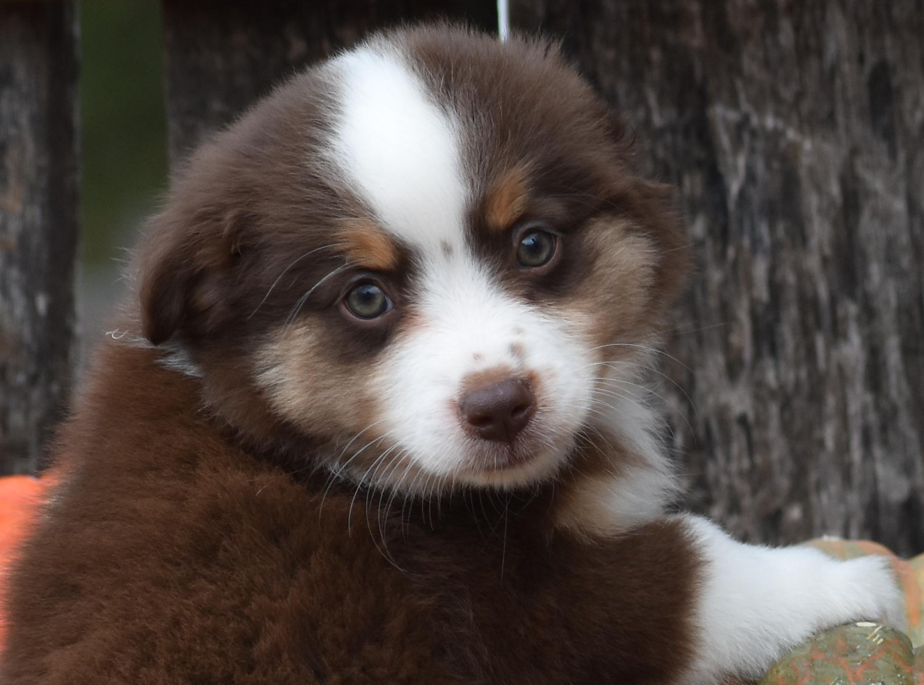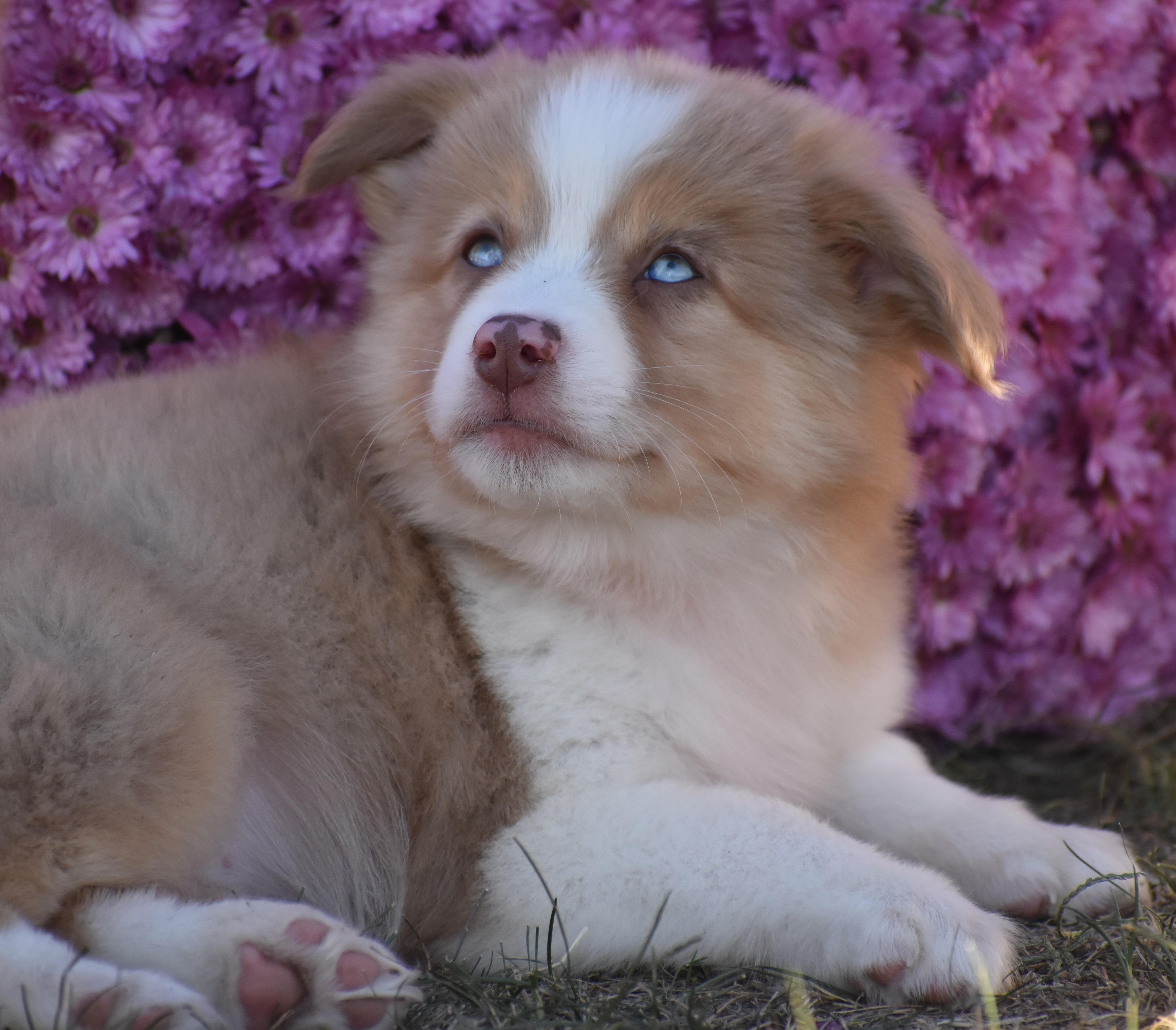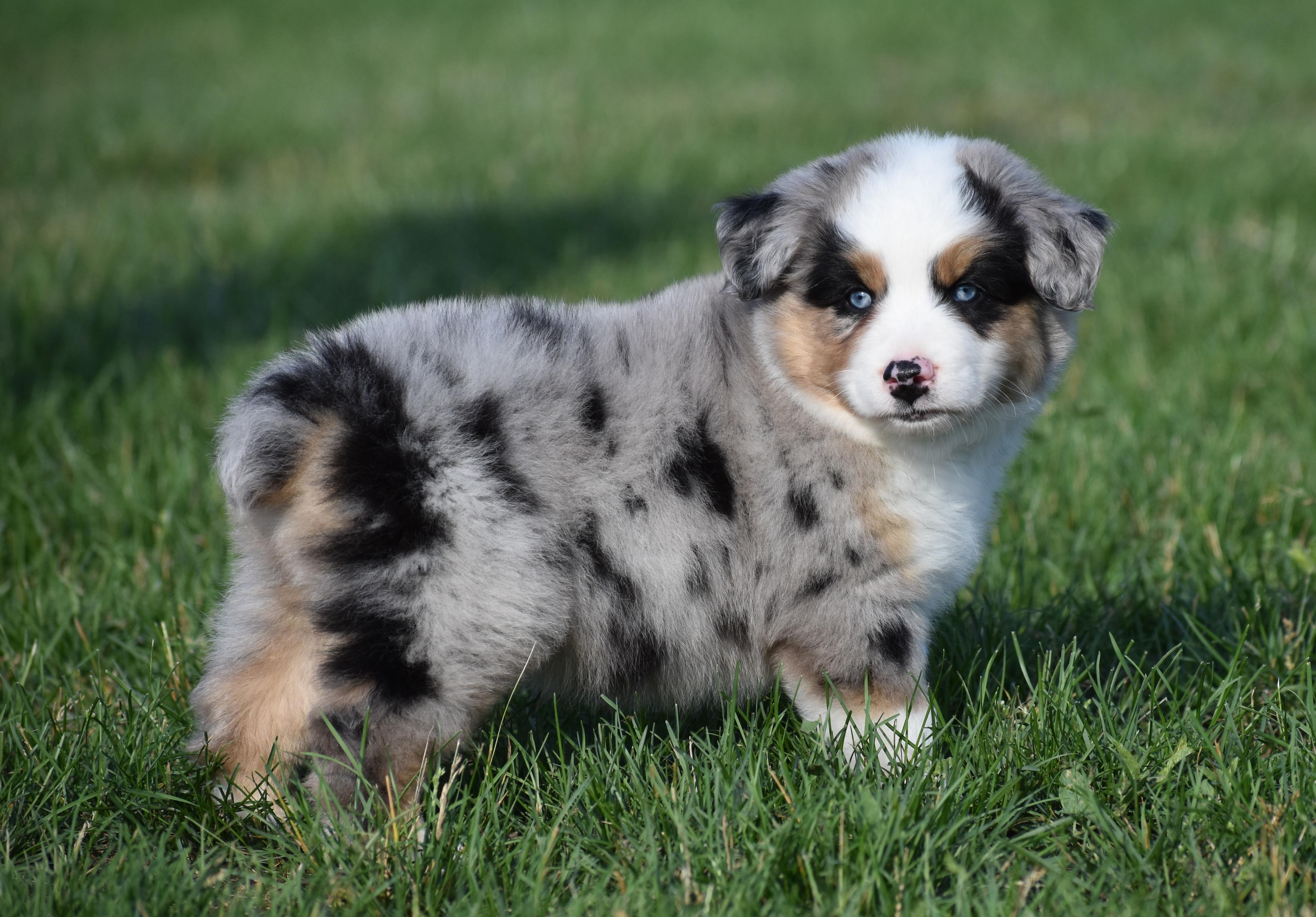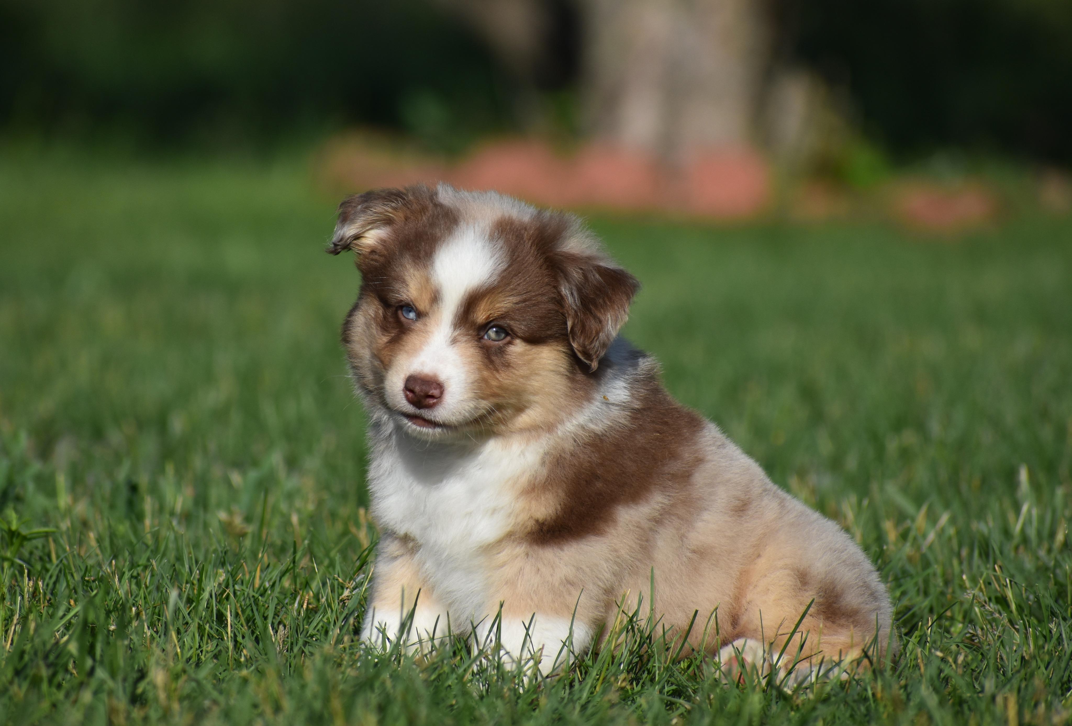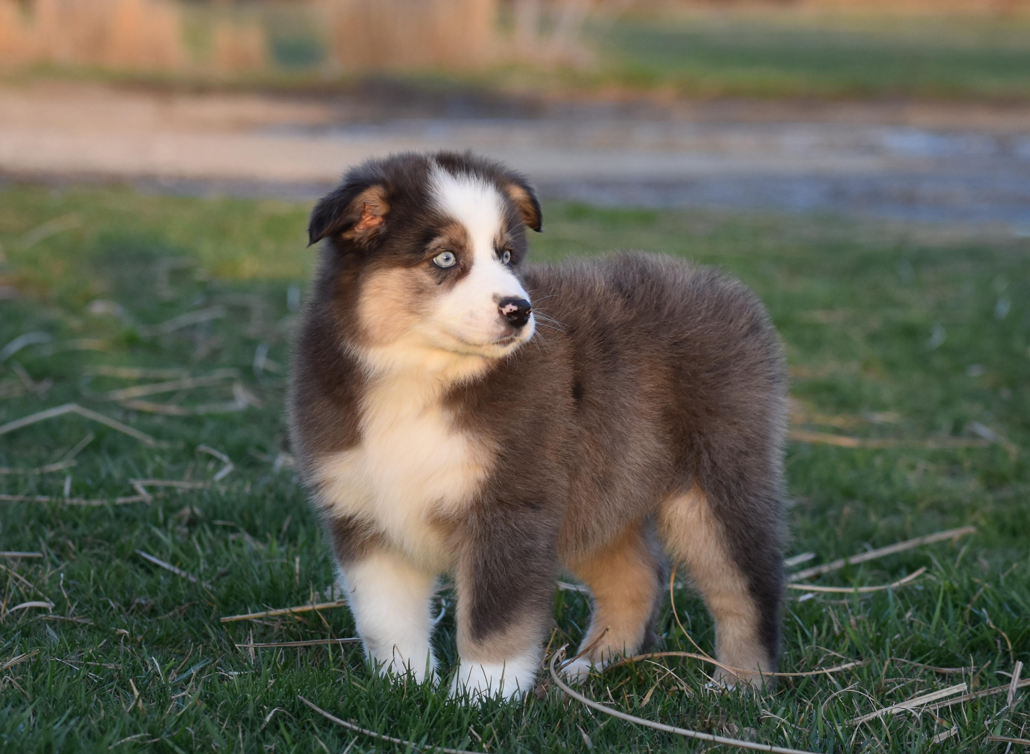 Our Miniature Australian Shepherd puppies are red merle. Australian Shepherd puppies are red merle. Colors will vary depending on the parent dogs.