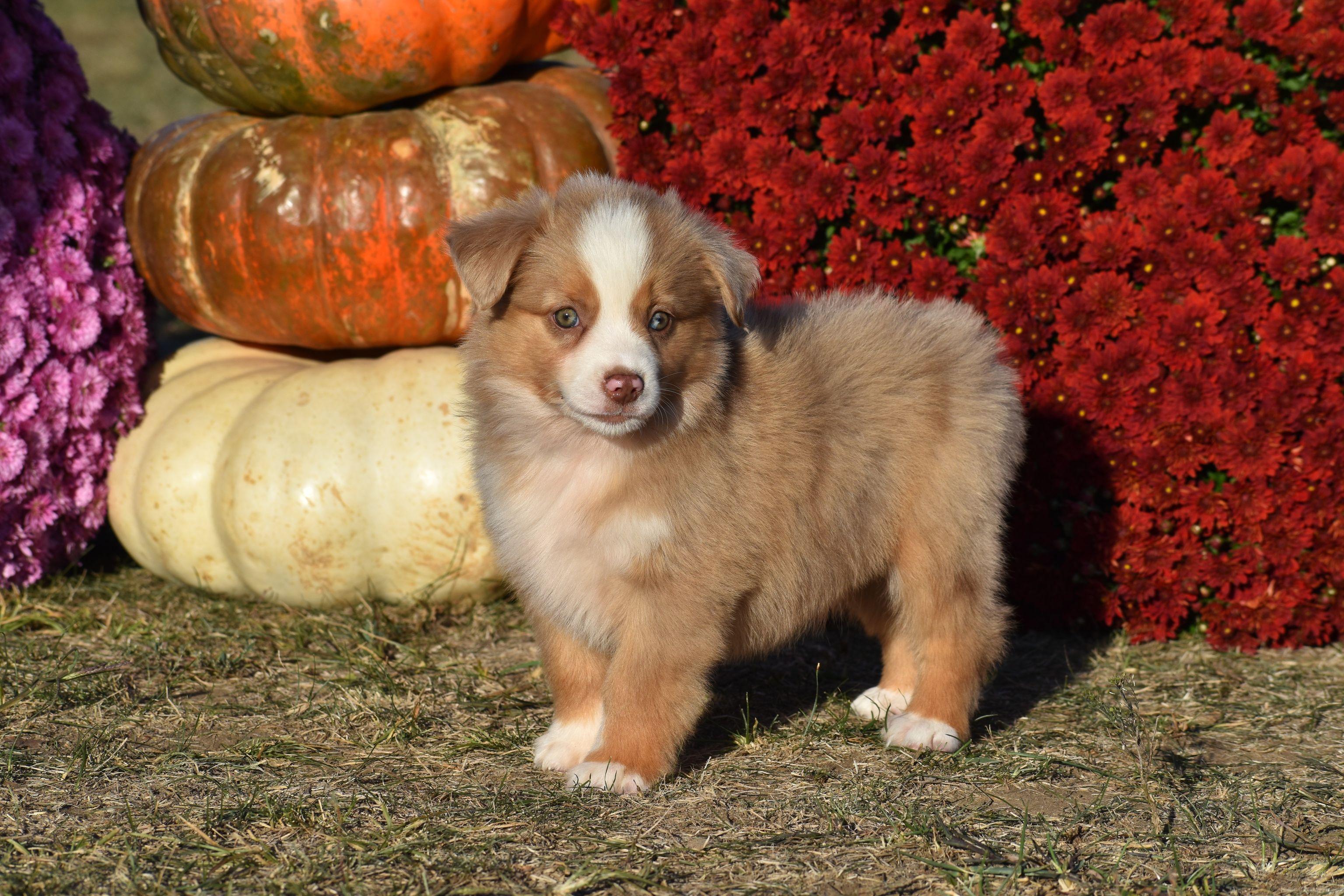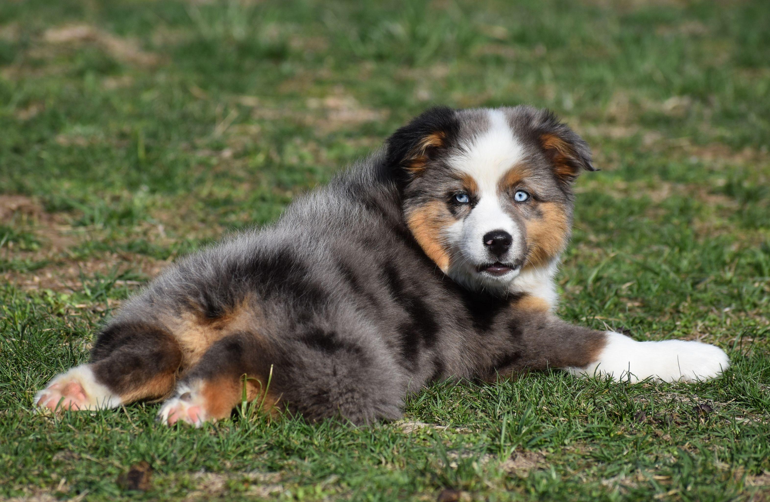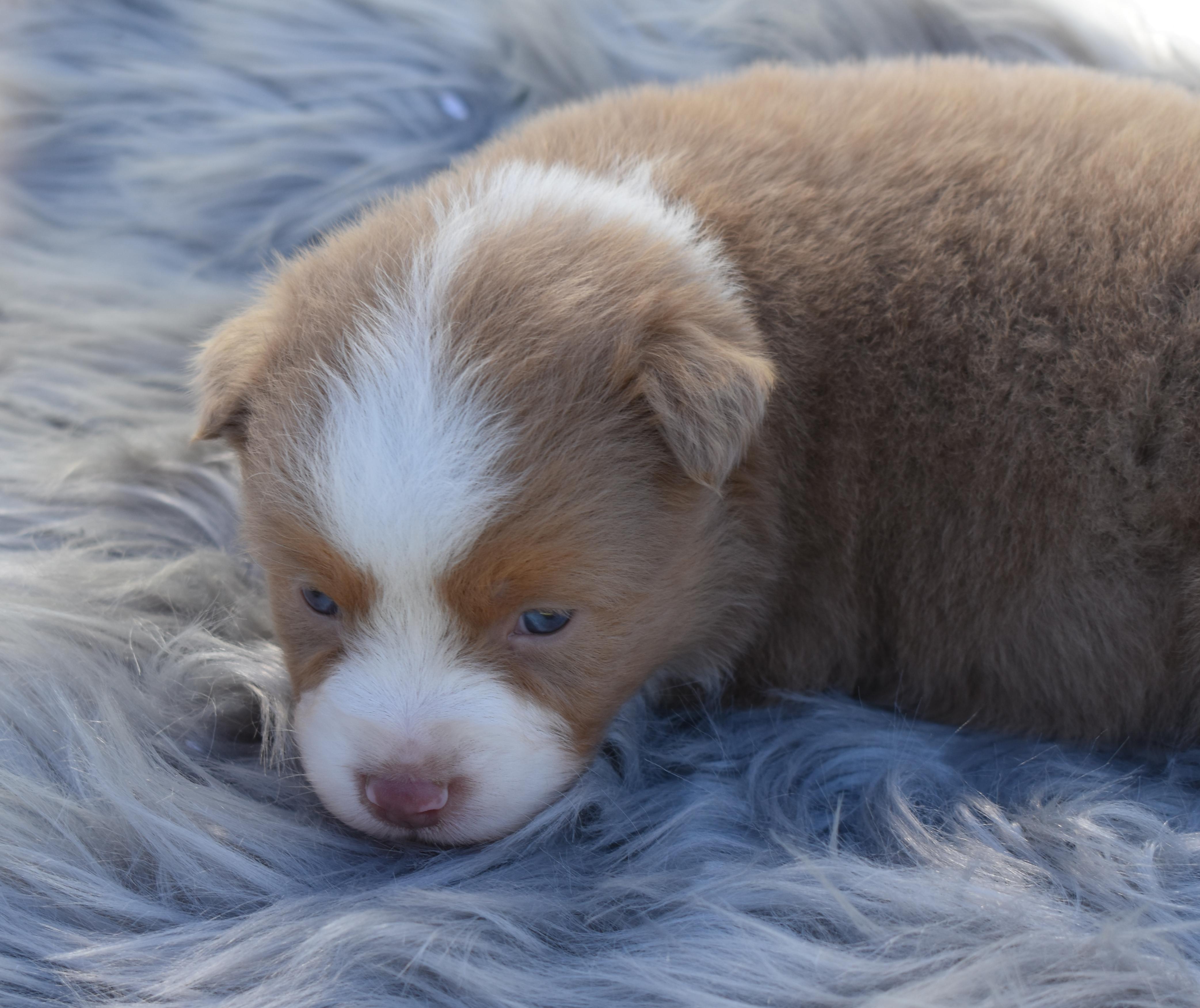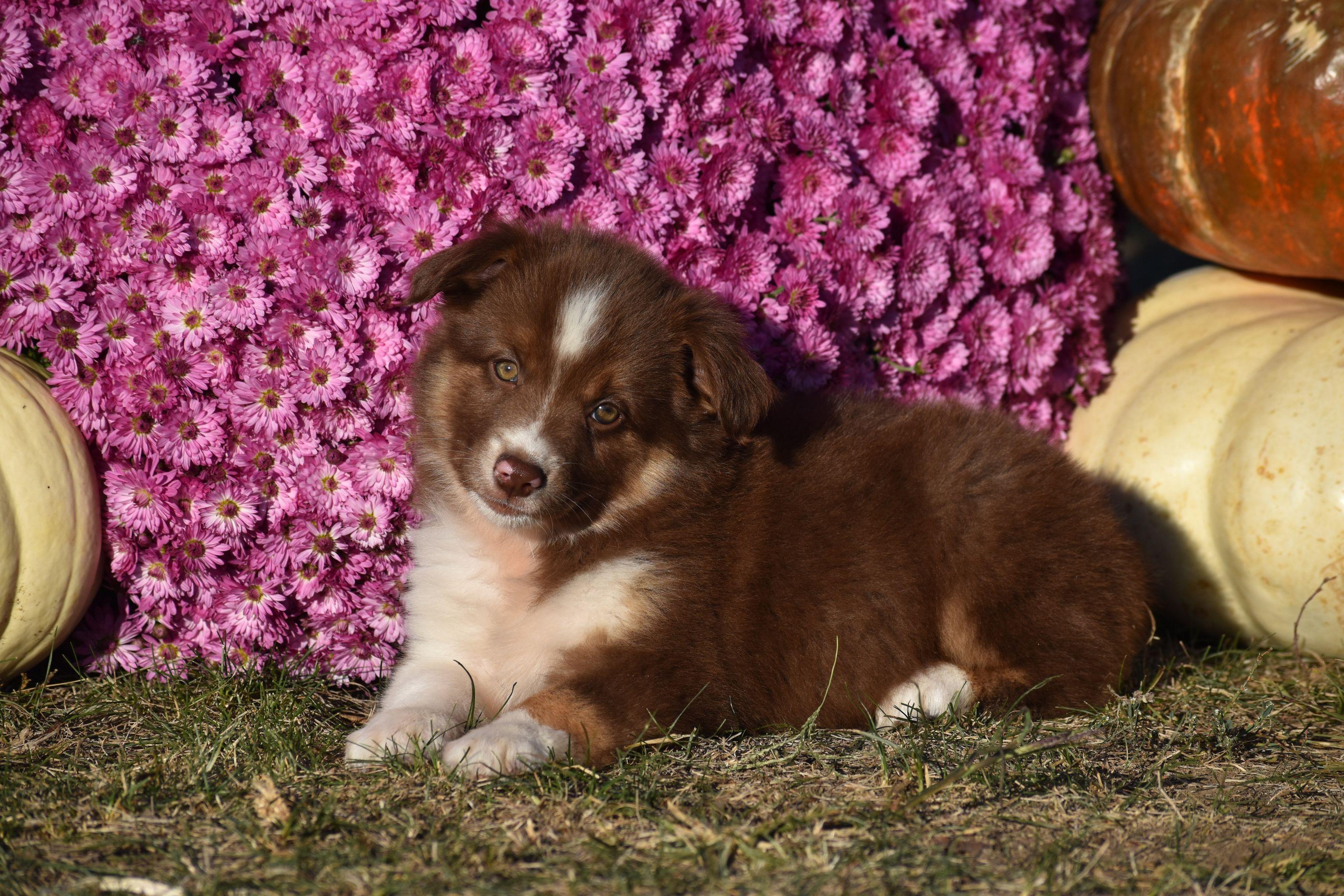 Our Miniature Australian Shepherd puppies are red merle. Australian Shepherd puppies are red merle. Colors will vary depending on the parent dogs.