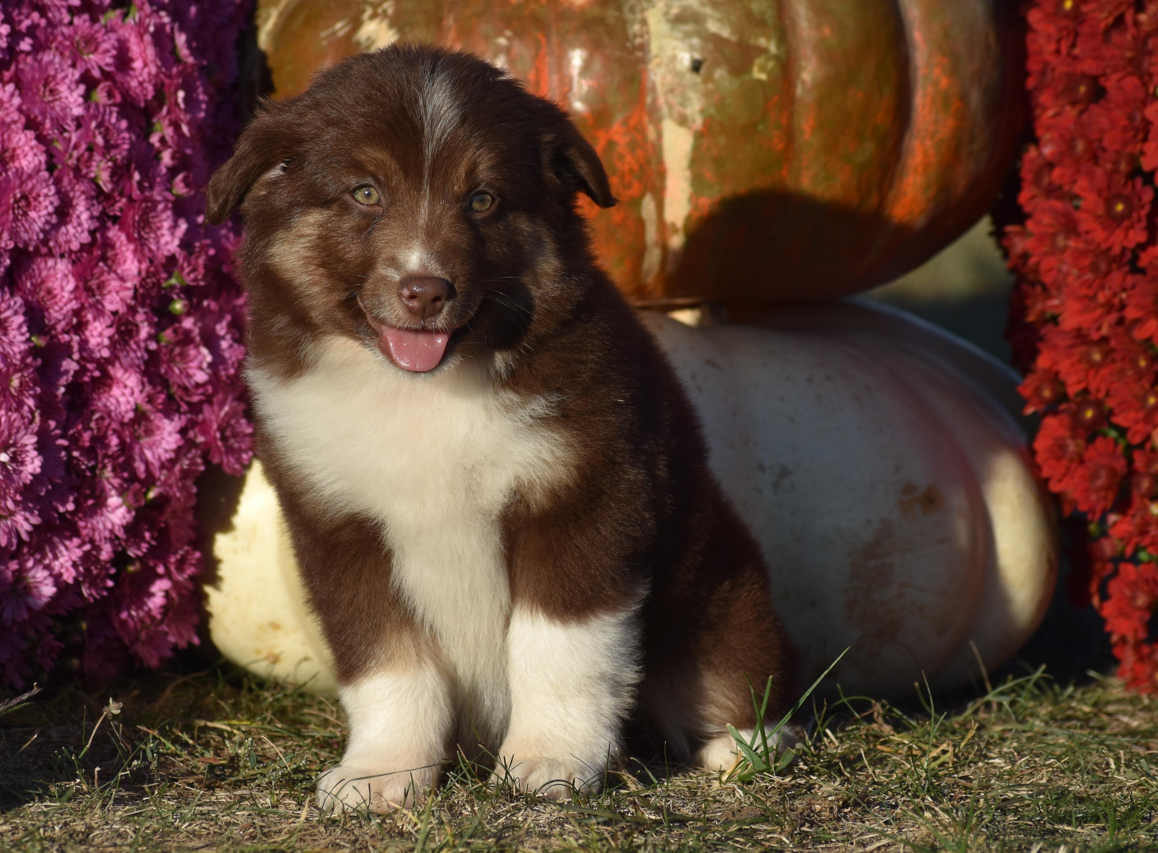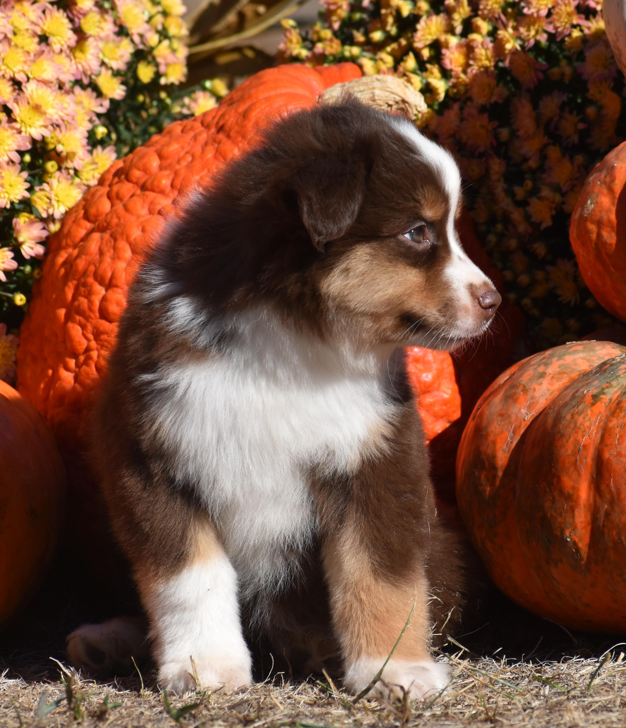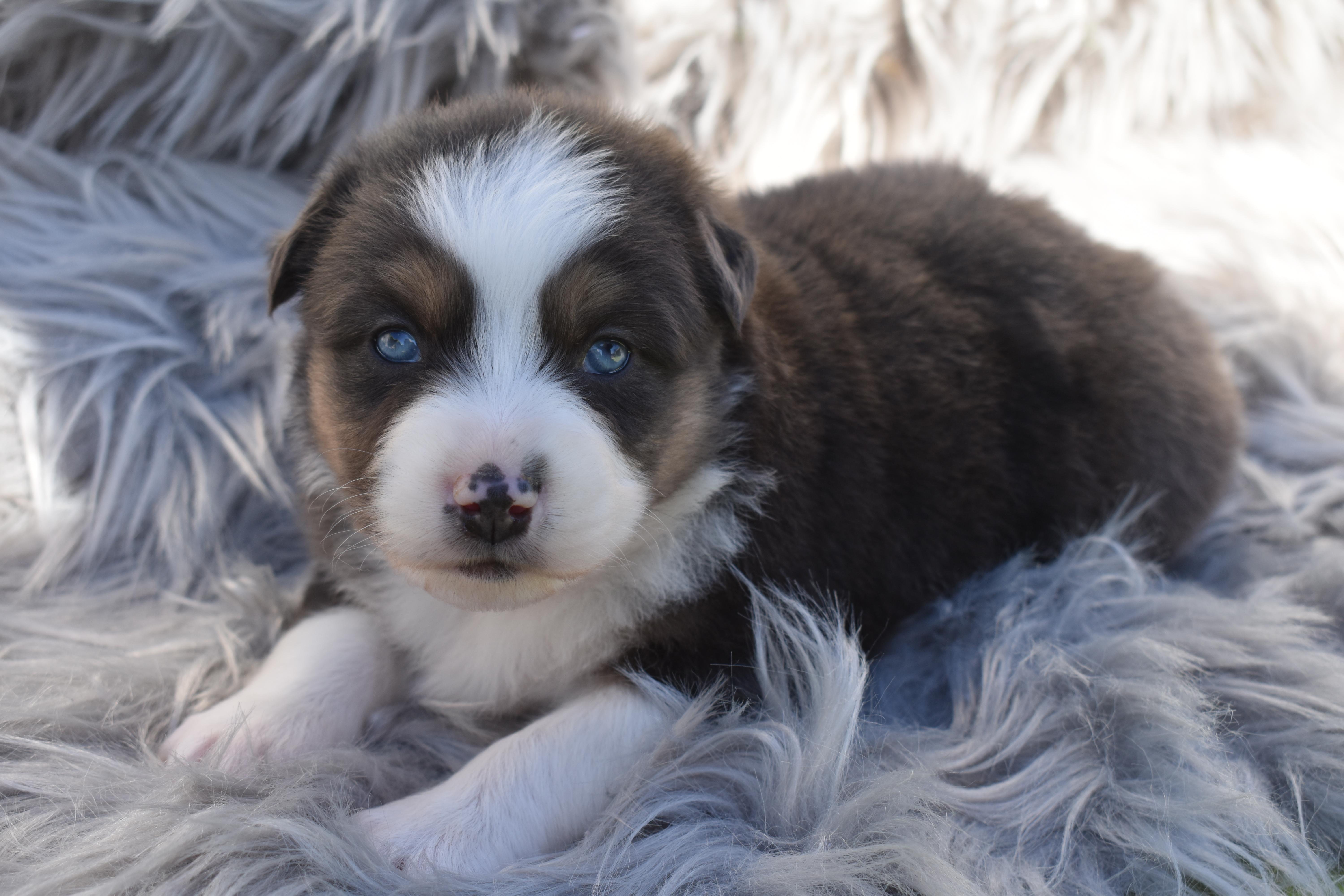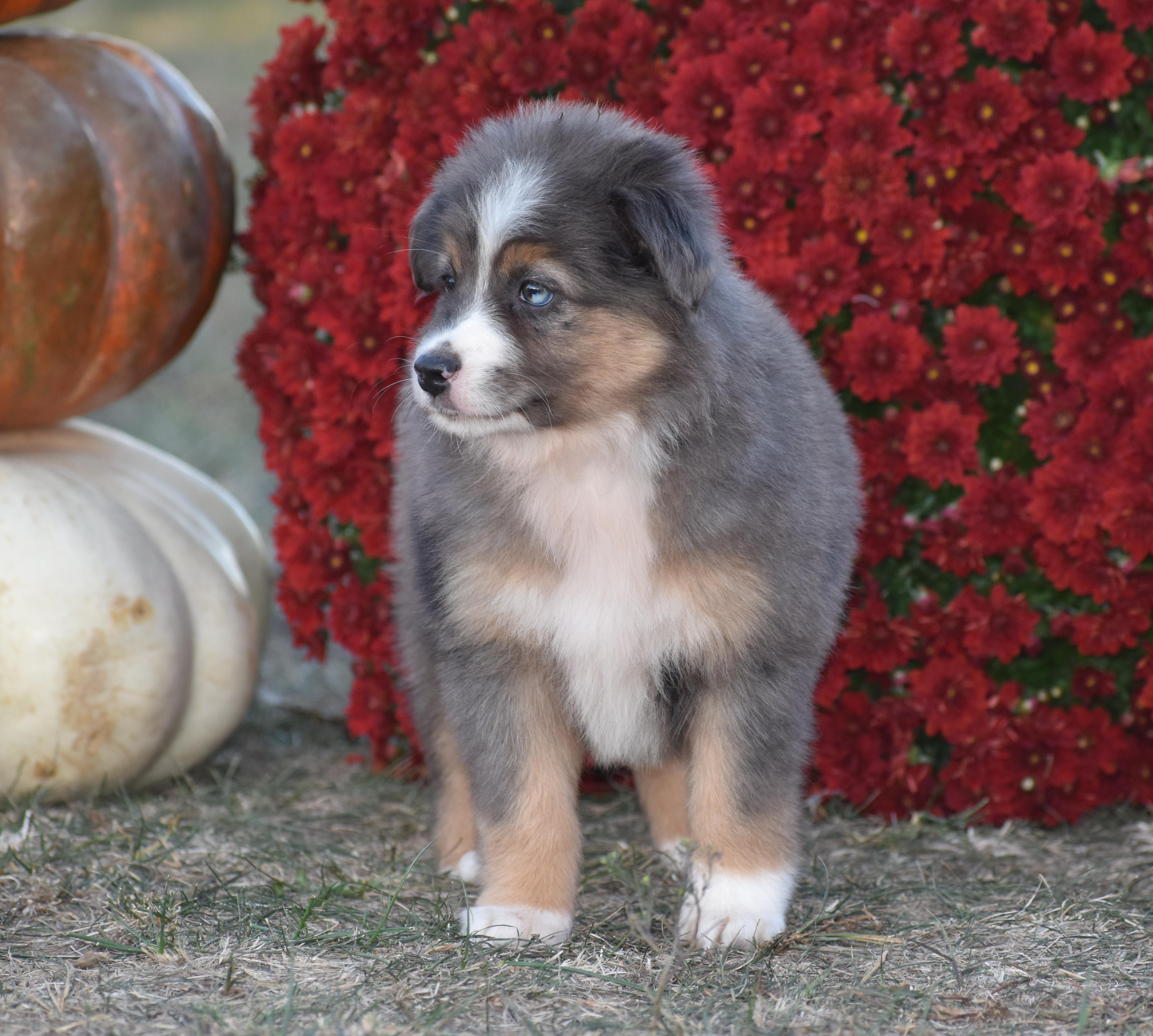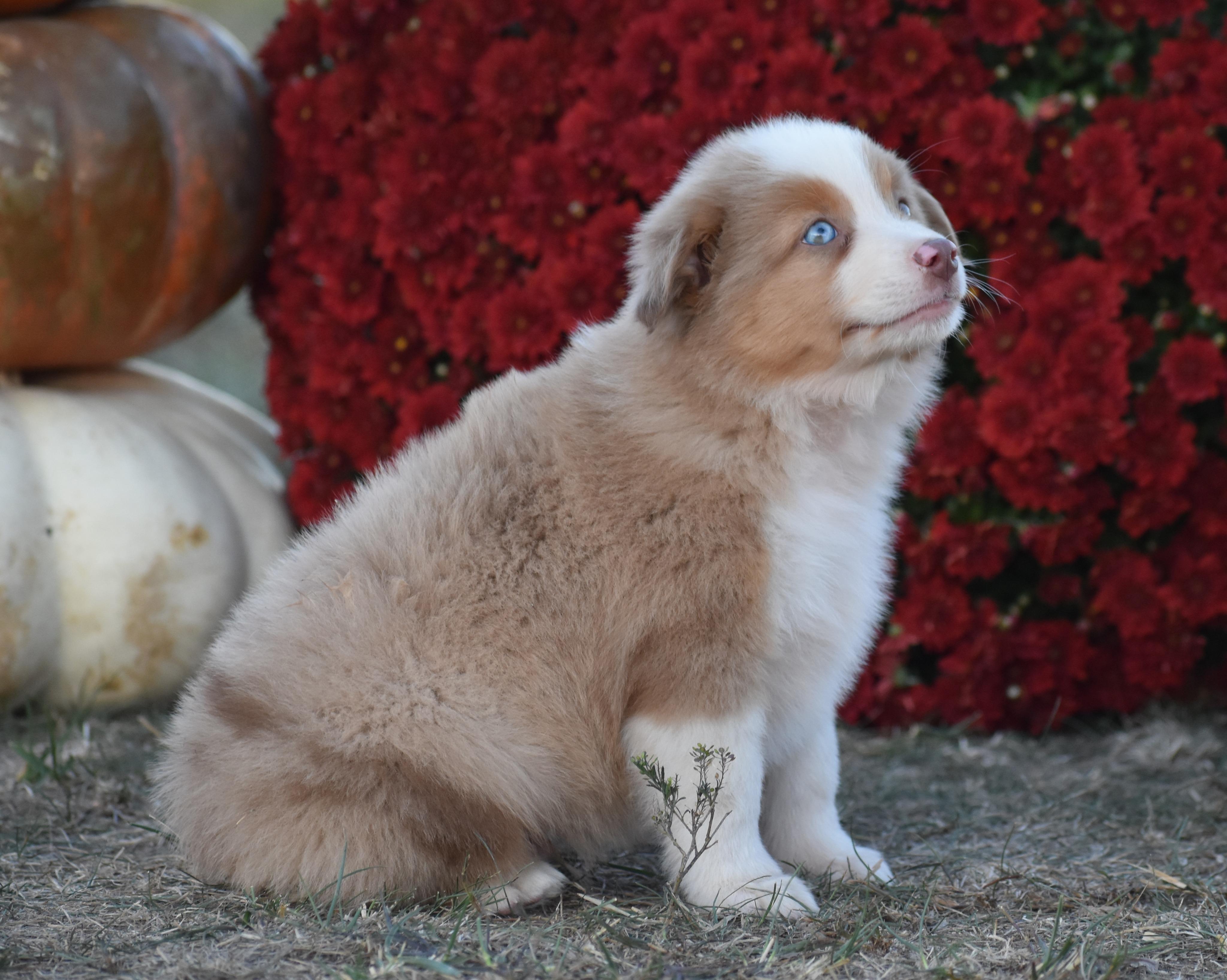 Our Miniature Australian Shepherd puppies are red merle. Australian Shepherd puppies are red merle. Colors will vary depending on the parent dogs.