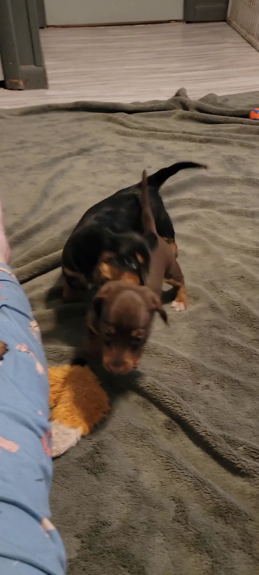 Our puppies include chocolate and tan and black and tan. Colors will vary depending on the parent dogs.