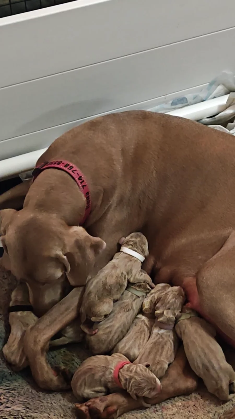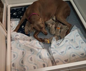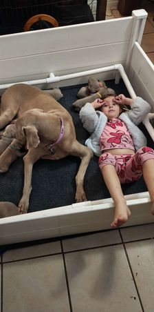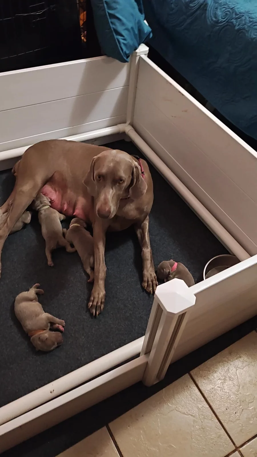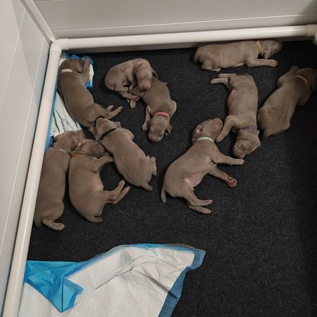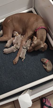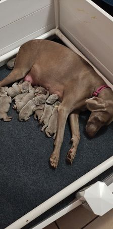 My first litter was in 1989, my second litter was in 2021, I have bred mostly for my own so I can keep a puppy so this current litter in November 2024 will be the first litter that I don't plan to keep a puppy (I say that now). I love sharing the breed with people that are weimaraner people. My fourth litter born April 16th 2026