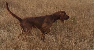 I breed to come as close to the standard as I can get and also preserve the hunting qualities of the Irish. Many of my dogs have done well in the field as well as in the breed ring. I've finished most of my dogs myself. My dogs' head type, fronts, and athleticism is up to standard. I've been told you can recognize my dogs in the ring by their wonderful side gait.