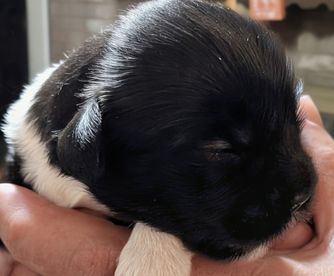 Snuggles and Cookie had puppies on August 27. Snuggles helps cookie care for their pups there were 6 and all but are reserved. Daisy is the last