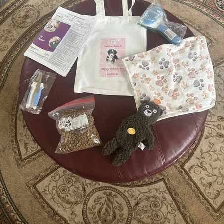 Goodie bag that goes home with puppy has what you need to take care of her💕