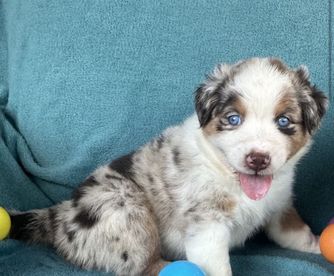 Our puppies include red merle, blue merle, black tri-color, and red tri-color. Colors will vary depending on the parent dogs.