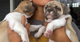 Our puppies include brindle, tricolors, fawn and white, and black and tan. Colors will vary depending on the parent dogs.