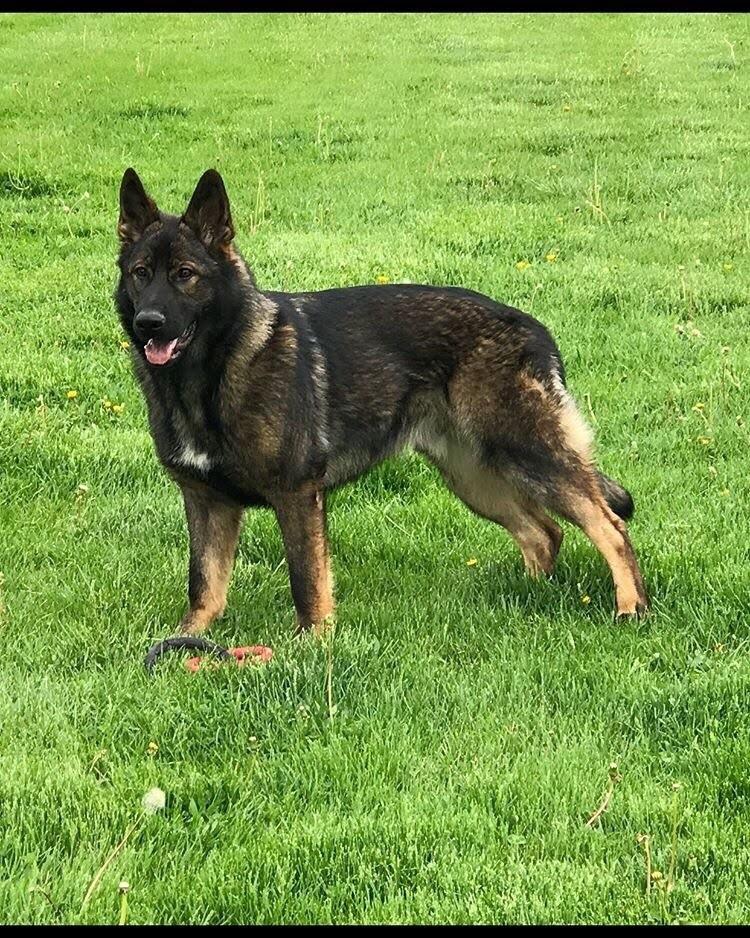 Dual purpose K9 for sheriff's department. Champion bloodlines. Trained in Advanced obedience, agility, track/trail, apprehension, narcotics and bite work. Has a good on off with family although very protective instincts. We've raised him since he was a pup.