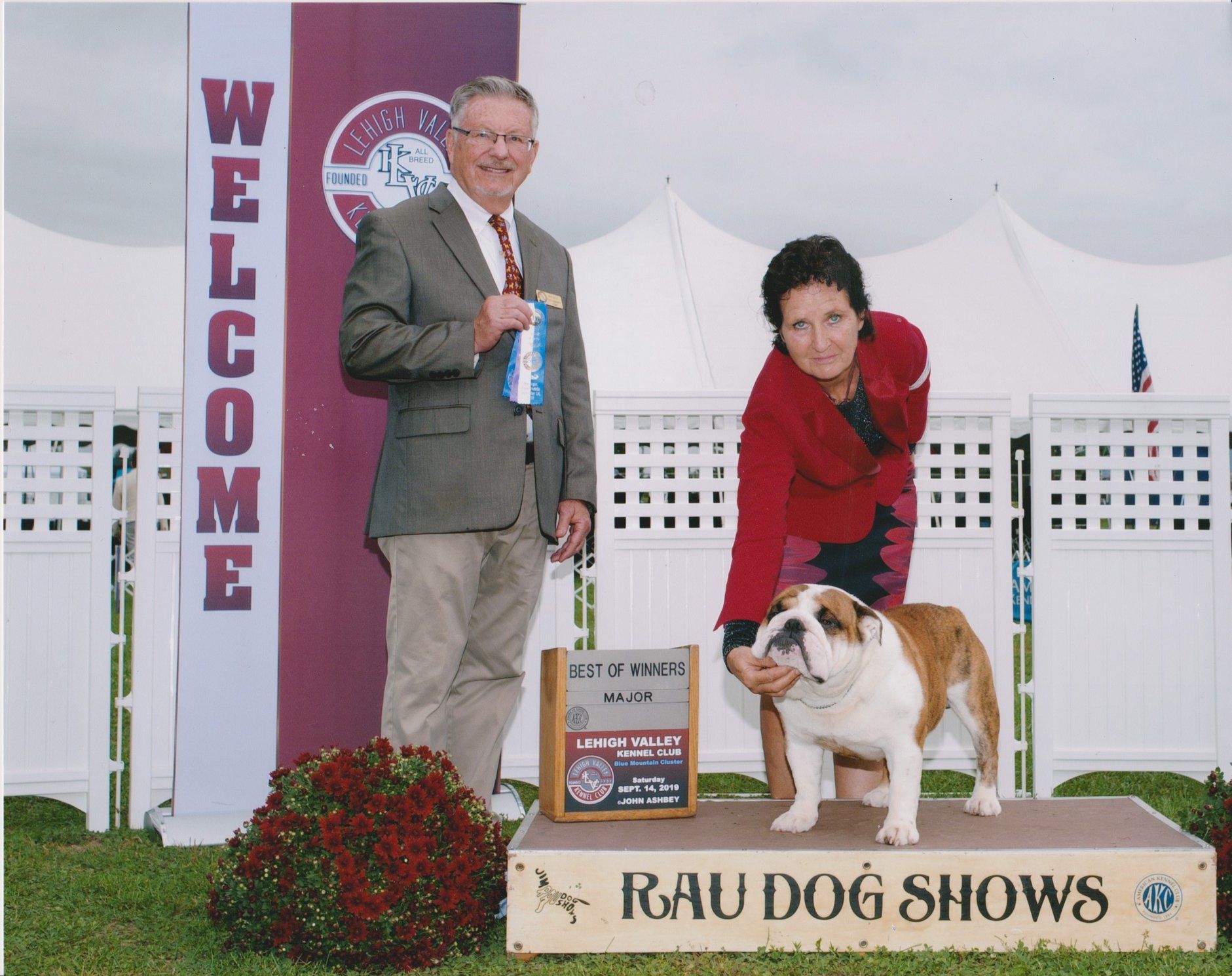We have been showing dogs for over 40 years and all of our dogs are or have been on the show circuit. We were inducted to the Hall of Fame as breeders by the Bulldog Club of America in 2008.