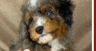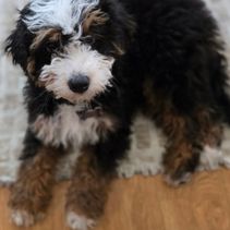 Haven is a Blue Merle Tri Multigen Mini Bernedoodle. She is sweet gentle and loving. She produces puppies that are not only beautiful for they have incredible personality. She is also Double Furnished and produces high quality plush coats that are hypoallergenic and non shed.