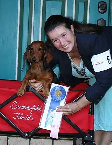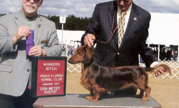 I'm Iris B., the breeder behind D & B Ranchette located in Summerfield, FL. We strive to breed high-quality long hair dachshunds for the show ring and as beloved family members. Our main focus is on breeding for temperament and on bloodlines. Our adults are DNA tested for 174 potential defects by EMBARK. Our dachshunds are our children and their offspring our grandchildren. We only want them to go to the very best homes committed to loving and caring for them throughout their lives. Due to their superior bloodlines and careful breeding programs, their life expectancy is 16 - 22 years with proper care.