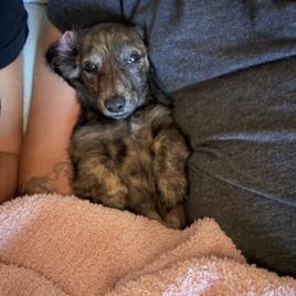 Sandra Dee is a female Dachshund. Carefully selected as a great representative of her breed, Iris decided to make her part of their program. Iris has passed Good Dog’s screening process, which involved a review of their breeding practices, environment, and the mental and physical health of their dogs.