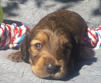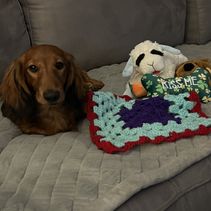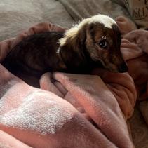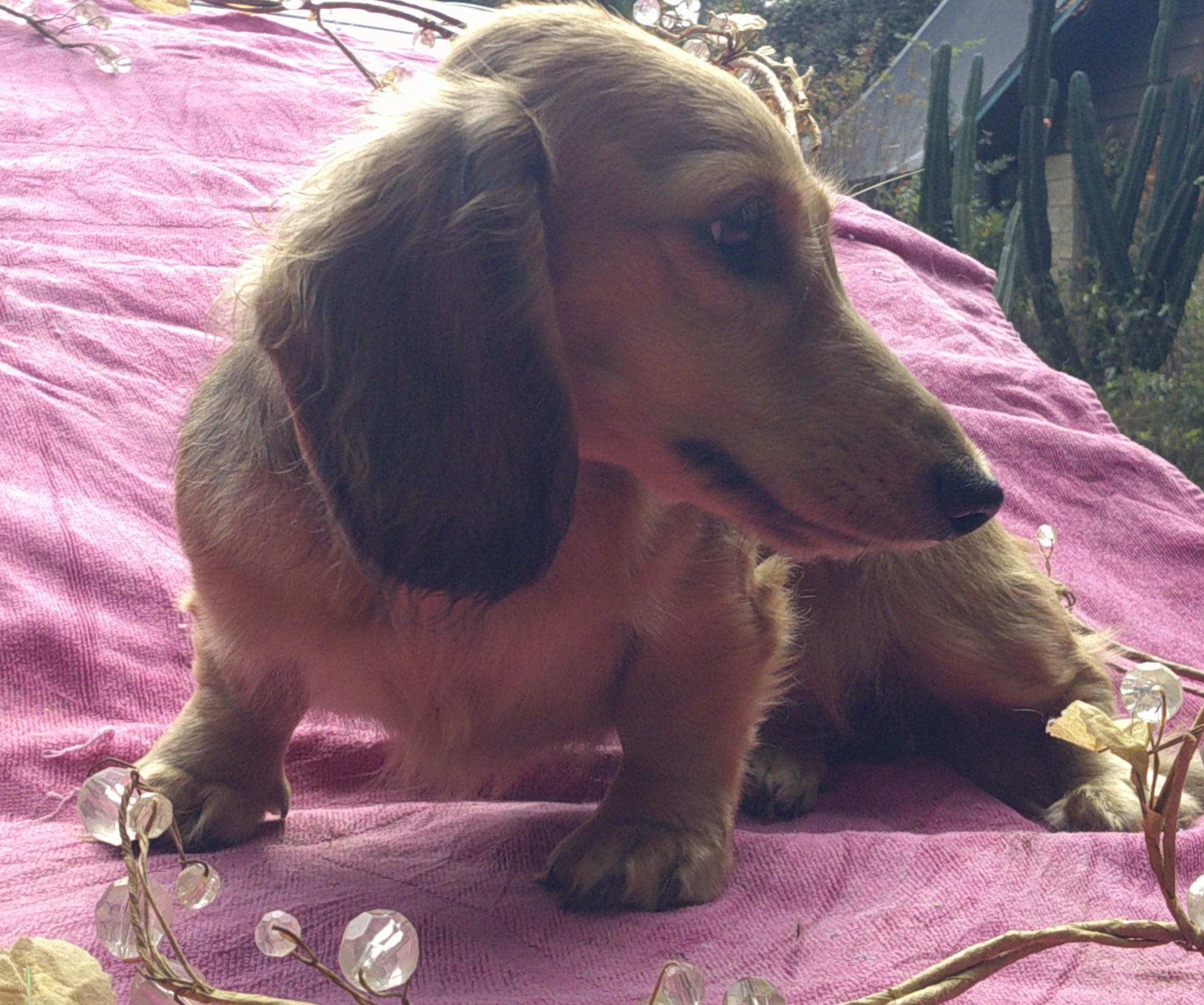 Lady is a shaded cream "kaninchen" which is German for "rabbit size" a grown dachshund that is 8 lbs or less. She is adorable and loving!