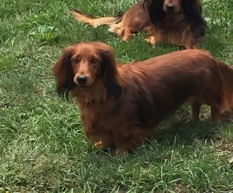 I first met Iris via phone where I was more than impressed with her love, dedication, and loyalty the dachshund breed. She’s an awesome lady with an unwavering knowledge of the breed and she is always happy to share information. I selected the perfect pup from her and I could not be more satisfied with ‘Baron’. He is the perfect addition to my little family. I look forward to a growing friendship with Iris and learning all I can from her.