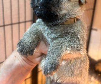 “My puppies have 2 sets of shots are microchipped and have dewclaws removed. Puppies are AKC registered parents are health tested by DNA and clear. Deposit is half of full price. And is refundable if you change your mind or find a puppy somewhere elsr.”