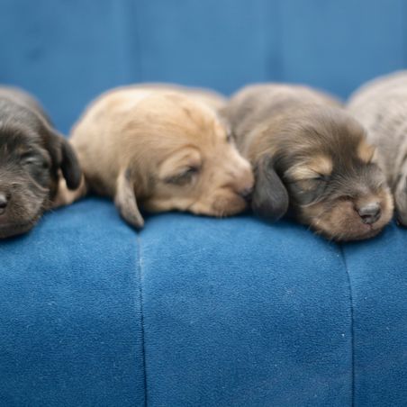 We’ve loved Dachshunds our whole lives and started breeding five years ago to share the joy they bring. Our mission is to raise beautiful, loving, and healthy Dachshunds while continuing to better the breed. It’s hard work, but seeing families meet their perfect pup makes it all worth it.