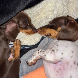 What a wonderful and easy experience dealing with Patricia! She always kept me up to date on how the pup was doing and send me pictures and videos! Pick up was smooth and easy as well! The lil guy is doing great and loving his sister. I highly recommend 8 Dach Army Mini Doxies!