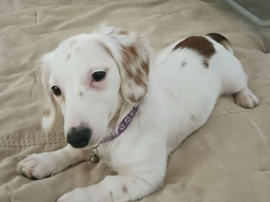Pebbles is a female Dachshund. Carefully selected as a great representative of her breed, Jamie decided to make her part of their program. Jamie has passed Good Dog’s screening process, which involved a review of their breeding practices, environment, and the mental and physical health of their dogs.