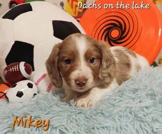 I'm Jamie H., the breeder behind Dachs on the lake located in Bernice, OK. We’re proud of the healthy, affectionate, and behaviorally well-rounded puppies we raise for other families to love! Our dogs are our passion, and we can't imagine spending our lives without them. We are dedicated to achieving excellence and healthy family pets, and we love to raise puppies and prepare them for their forever homes.