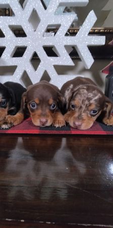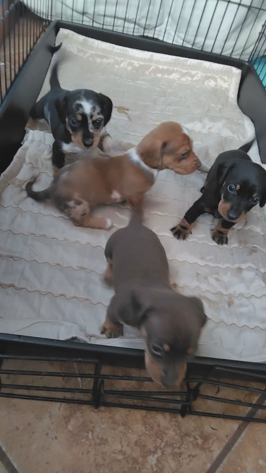 I adore Dachshunds💖 they are the absolute best family dogs. Our babies are raised in home socialized with children and other pets. Will have first vet visit before going home. 💞🩵💞