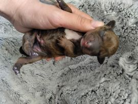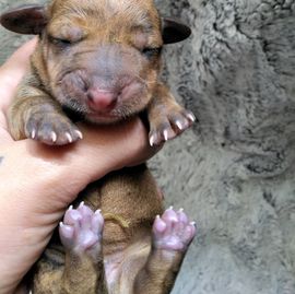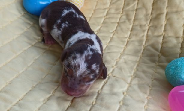 Our puppies include piebald, sable, red, wild boar, chocolate, fawn (isabella), chocolate and tan, chocolate and cream, black and tan, and dapple. Colors will vary depending on the parent dogs.
