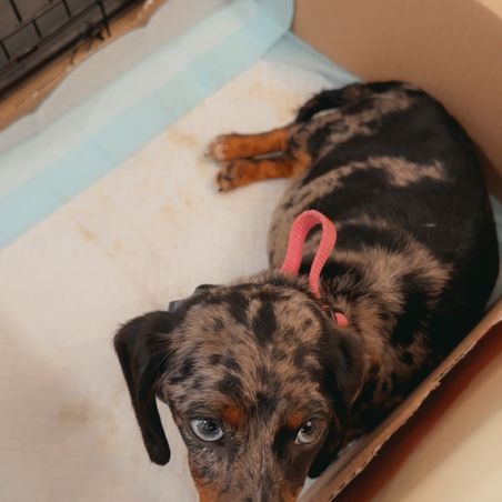 I'm Lyndsey p., the breeder behind Dachshund Delight located in Blountville, TN. All of our dogs are bred, raised and loved indoors to produce happy, healthy pets for the best companions! And CKC registered.