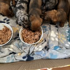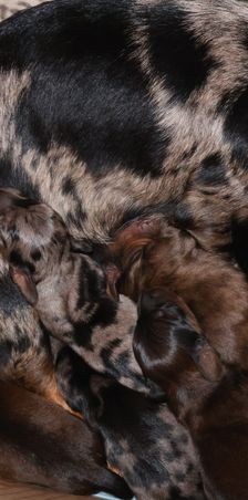 Our puppies include red and dapple. Colors will vary depending on the parent dogs.