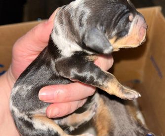 Our puppies include piebald, red, black, chocolate, fawn (isabella) and tan, chocolate and tan, blue and tan, blue and cream, black and tan, and dapple. Colors will vary depending on the parent dogs.