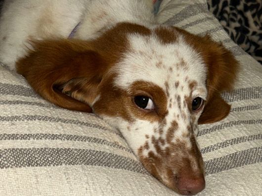 Annie is gentle natured and loves belly rubs! She mostly wants to just lounge around and be with her humans! She’s a great listener and loves her squeak toys!