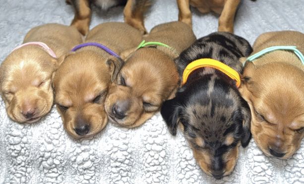 Our puppies include piebald, red, black and tan, and dapple. Colors will vary depending on the parent dogs.